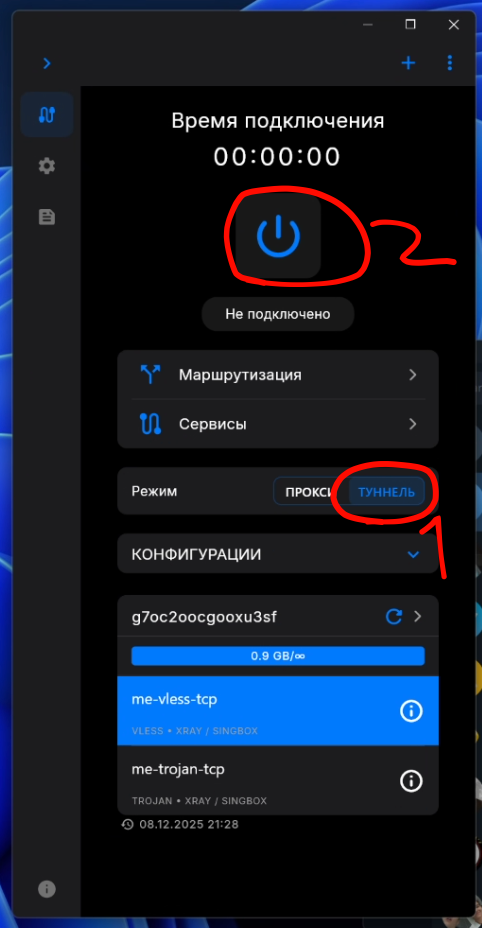 Нужно скачать и установить https://github.com/kurbezz/share/raw/refs/heads/main/v2RayTun_Setup.exe